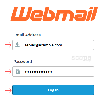 1. Open http://example.com/webmail, replace example.com with your domain name, enter your full email address and password in user login details, and click on Login.