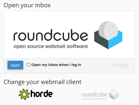 2. From the cPanel's Webmail Page, click on any Webmail email reader such as Roundcube, or any other available application.