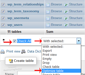 How to Optimize a Database via phpMyAdmin in cPanel Print
